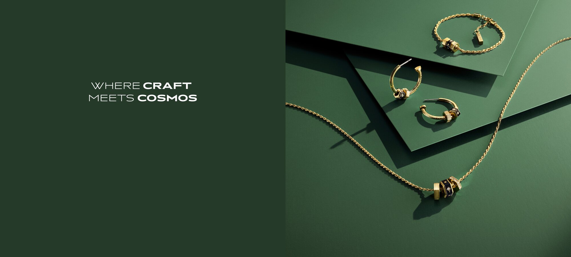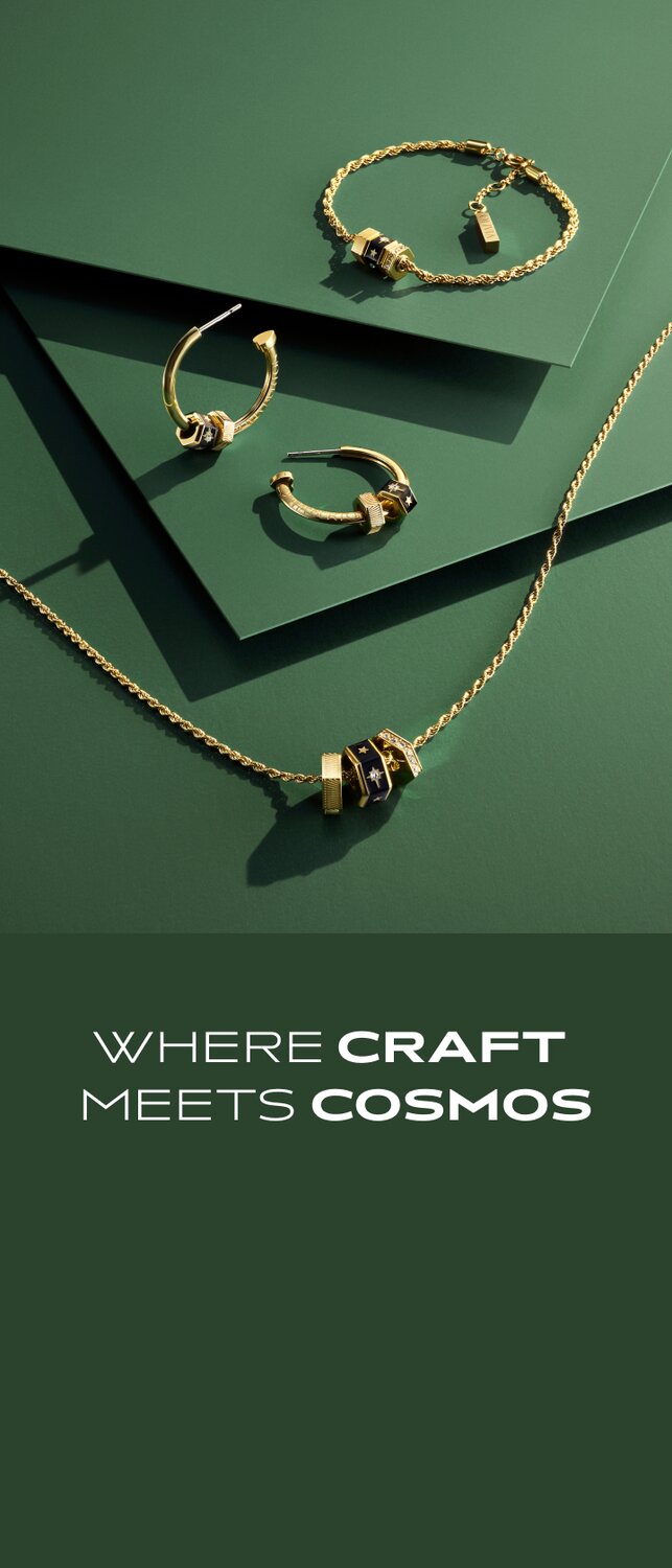 Inspired by celestial talismans, the BEAD CHARM collection tells a story with each tiny bead. Cosmic-inspired engravings and crystal details bring the drama to statement necklaces, bracelets and earrings.